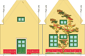 Like the A photo of the original structure that inspired this project is shown at the left. I'll try to get a better photo next time I see one at a train show. Although a person good with tools could use our plans and graphics to build our "Tribute to Tinplate" structures from sheet tin, we show how to do it with cardboard. Ironically, this reflects yet another tradition - when tinplate trains and towns were in vogue, Japanese companies manufactured heavily-shellacked cardboard houses and stations that you could use to supplement your tinplate empire. Today's putz house collectors call these old Lionel and Ives-inspired cardboard houses "Lackies," because of the lacquer that made them almost as shiny as the metal structures that inspired them. Update for September, 2009 - Halloween Graphics added! If you have started your own Halloween village, you'll be glad to see that it's easy to make a Halloween version of this by using Halloween-themed graphics like the ones we've provided. Scroll most of the way down to see the graphics. If you like them, simply substitute them for the "normal" graphics as you build the house. - Paul Building a Vintage Tin-Style CottageThis project was designed to look good with vintage trains. When Paul sent me the original graphic, he gave me many options to choose from, including different roof colors. We also negotiated a little about the way I wanted to do the windows. The end result is that there are several different ways to build this project, and Paul about lost his mind trying to sort them all into an article that still made sense. But this way, you have almost as many choices as I did when I started building my cottage, and you can make a totally unique version if you wish.Here's an example: Paul's original idea was to reproduce the "recessed" windows of the original by cutting out the windowframes on the building walls and gluing more windowframes in behind them. But I wanted to use a "one-piece" solution for the walls. I also wanted to have blue windowpanes like the Lewis Park Station. So Paul relented and made a version with blue windowpanes. Since there wasn't going to be any cutting out on the blue-window version, Paul also provided "Trompe d'Oeil" shading on the door and windowframes to provide a more three dimensional look. (For more about "Trompe d'Oeil" shading, see Paul's "blog-like article" Pay No Attention to that Man Behind the Curtain.)
